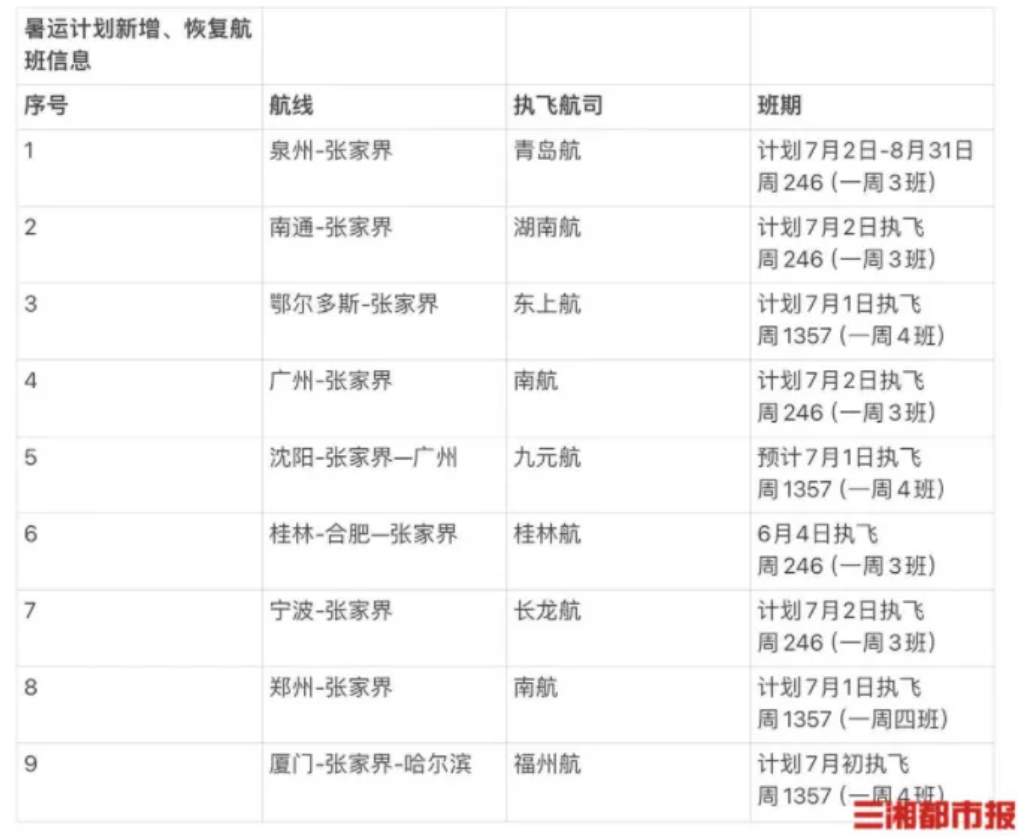 6月24日,記者從張家界荷花國際機(jī)場(chǎng)獲悉,臨近暑運(yùn),為滿足廣大旅客出行需求,張家界機(jī)場(chǎng)計(jì)劃在暑運(yùn)期間恢復(fù)和新增廣州、桂林、廈門等9條航線,同時(shí)還將對(duì)多條既有航線進(jìn)行加密,為旅客的暑期出行提供更加豐富的選擇。