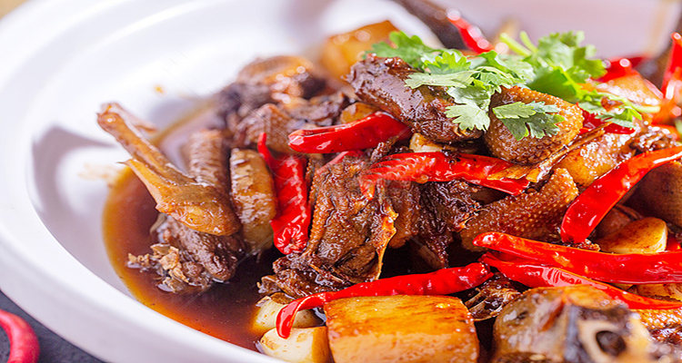 洪江血粑鴨是湘西極具代表性的一道菜肴,味道濃郁,美味獨(dú)特。把鴨肉放入到油鍋中,加入干辣椒、生姜、調(diào)味食材、糯米等一起翻炒,把鴨肉炸出油后倒入清水和鴨血小火燜煮,直至鴨肉酥爛。嘗上一口滿嘴油香,鴨肉酥爛入味,鮮味十足,極具風(fēng)味。