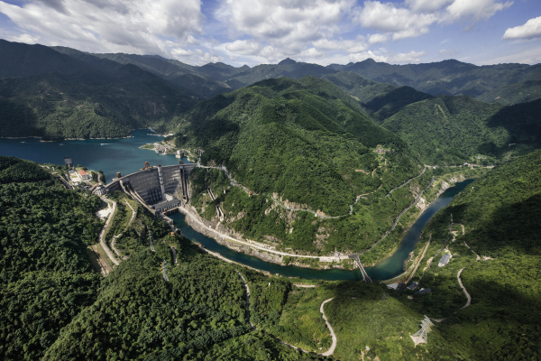 一壩鎖東江,高峽出平湖。東江大壩是我國自行設(shè)計建造的第一座雙曲薄殼型拱壩,壩高157米,壩型美觀、結(jié)構(gòu)新穎、氣勢雄偉,在當(dāng)時同類型壩中世界排名第二,亞洲排名第一。