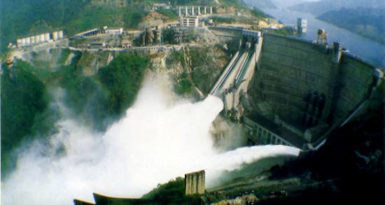 1986年8月2日,東江水電站正式關(guān)閘蓄水,雙曲大壩鎖住滾滾東江水,將其定格成碧波萬頃的湘南明珠——東江湖。大壩兩側(cè)有三條滑雪式溢洪道,每當(dāng)瀉洪時,湖水從溢洪道飛瀉而下,再騰空躍起,頃刻間化成雨霧,迷漫整個峽谷,其勢如萬馬奔騰,其聲似萬鈞雷霆。身歷其境,如夢如幻,仿佛在縹緲之中,羽化飛升。即使在幾里開外,仍感水星拂面,頗具“盤空舞雪飛泉落,撲面銀花細雨來”的詩畫意境。